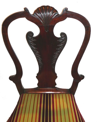 Description: Irish Carved Mahogany Side Chair, Circa 1800; labeled on bottom: _6609 Miller and Beatty Ltd/ House Furnishers/ Grafton Street Dublin.