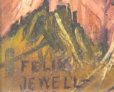 Description: Felix Jewell (American School) Oil on Board, Signed Lower Left and Dated 1932; featuring gordon setters in an autumnal field hunting, framed.