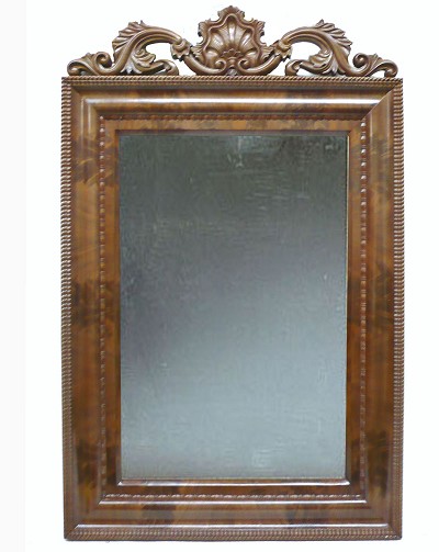 Description: George III Style Carved Walnut Looking Glass, 19th Century; featuring a reticulated crest over a rectangular frame centering a mirror plate.
