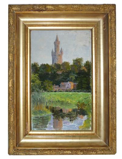 Description: Oscar Yosef de Kerdsmont Socec (Swiss Act. 1900) Oil on Board depicting Adolfsturm, Frieberg Germany. Note: Socec painted extensively in Europe in the 1900’s, he lived on the island of Capri, in Switzerland for several years and in Paris where he studied at the Beaux Arts Academy under such masters as Edward Sain and Carolus Durand. Mr. Socec retired to Augusta, Maine and worked from a studio at his son’s home. He frequently exhibited during this period in Boothbay Harbor, Maine.