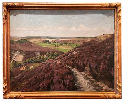 Description: Danish School Oil Canvas by Kongerslev, Dated 1922; inscribed lower right and depicting Bryrup, a picturesque area of Denmark in Jutland. Framed.