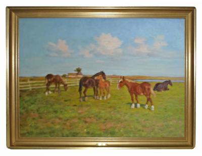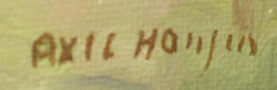 Description: Axel Hansen (Danish 1896-1936) Danish Landscape with Horses. Signed lower right. Framed. Hansen was educated at the Royal art academy in Copenhagen. He was a pupil of Viggo Brandt, and is especially known for his sun filled farm themed landscapes.