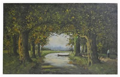 Description: European School Landscape Oil Board, Circa 1900; signed lower right.