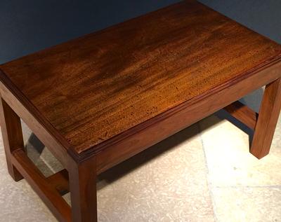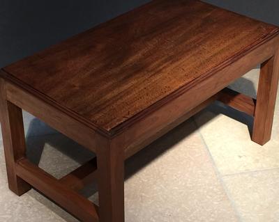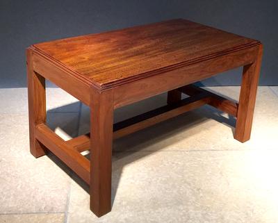 Description: George III Style Mahogany Side Table, the 18th Century Mahogany top raised on a later base with a reeded edge, Marlboro legs and an H shaped stretcher.