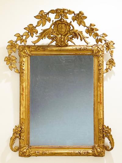 Description: Italian Rococo Giltwood Looking Glass Mirror, Circa 1780;