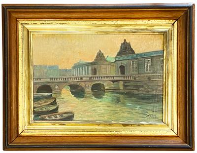 Description: Gydes (Danish) Oil on Canvas depicting the Marmorbroen Bridge in Copenhagen.